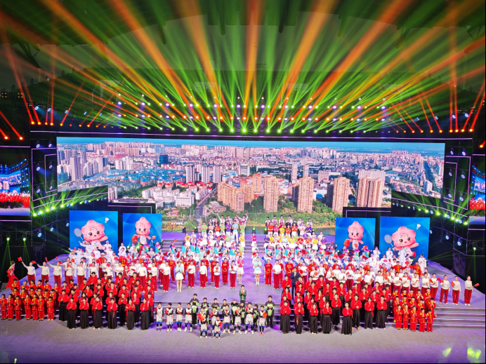 《感恩·建功支點》篇章結(jié)合第十七屆省運會宣傳歌曲《追夢有光》,展現(xiàn)荊楚兒女奮進新征程的拼搏精神,將全場氣氛推向高潮。