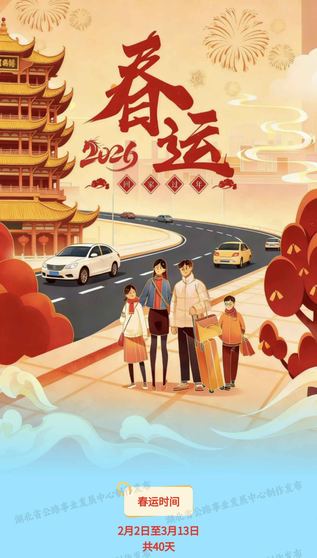 第一階段:春運(yùn)前期(2月2日至2月14日,共13天)。此階段客貨交織、車流密集,以務(wù)工返鄉(xiāng)、學(xué)生放假、貨運(yùn)車流為主,由南往北、由東往西的潮汐過境跨省車流和省內(nèi)大中型城市向周邊擴(kuò)散的返鄉(xiāng)車流集中,省內(nèi)干線公路流量持續(xù)攀升并保持高位運(yùn)行,預(yù)判在2月11日至13日(小年至春節(jié)前)出現(xiàn)返鄉(xiāng)流量高峰。