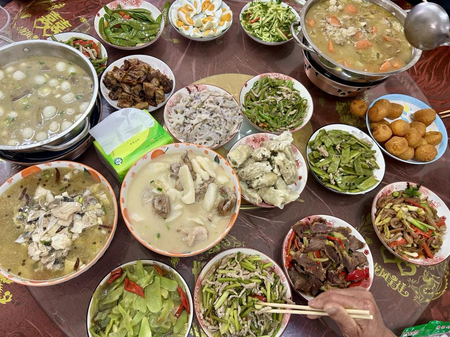 中午時分,食堂里歡聲笑語,其樂融融。老人們圍坐在一起,共進團圓飯。桌上菜品葷素搭配,營養(yǎng)均衡,還有熱氣騰騰的燒麥、松軟的餅子等手工面點,既顧及了老人們的口味,也體現(xiàn)了服務(wù)的細致。大家一邊品嘗著可口的菜肴,一邊親切地拉著家常,滄桑的臉上洋溢著幸福的笑容。