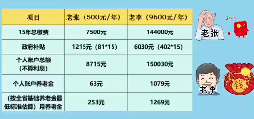 了解完養(yǎng)老金怎么算再讓我們來(lái)對(duì)比一下繳多繳少的區(qū)別↓↓↓