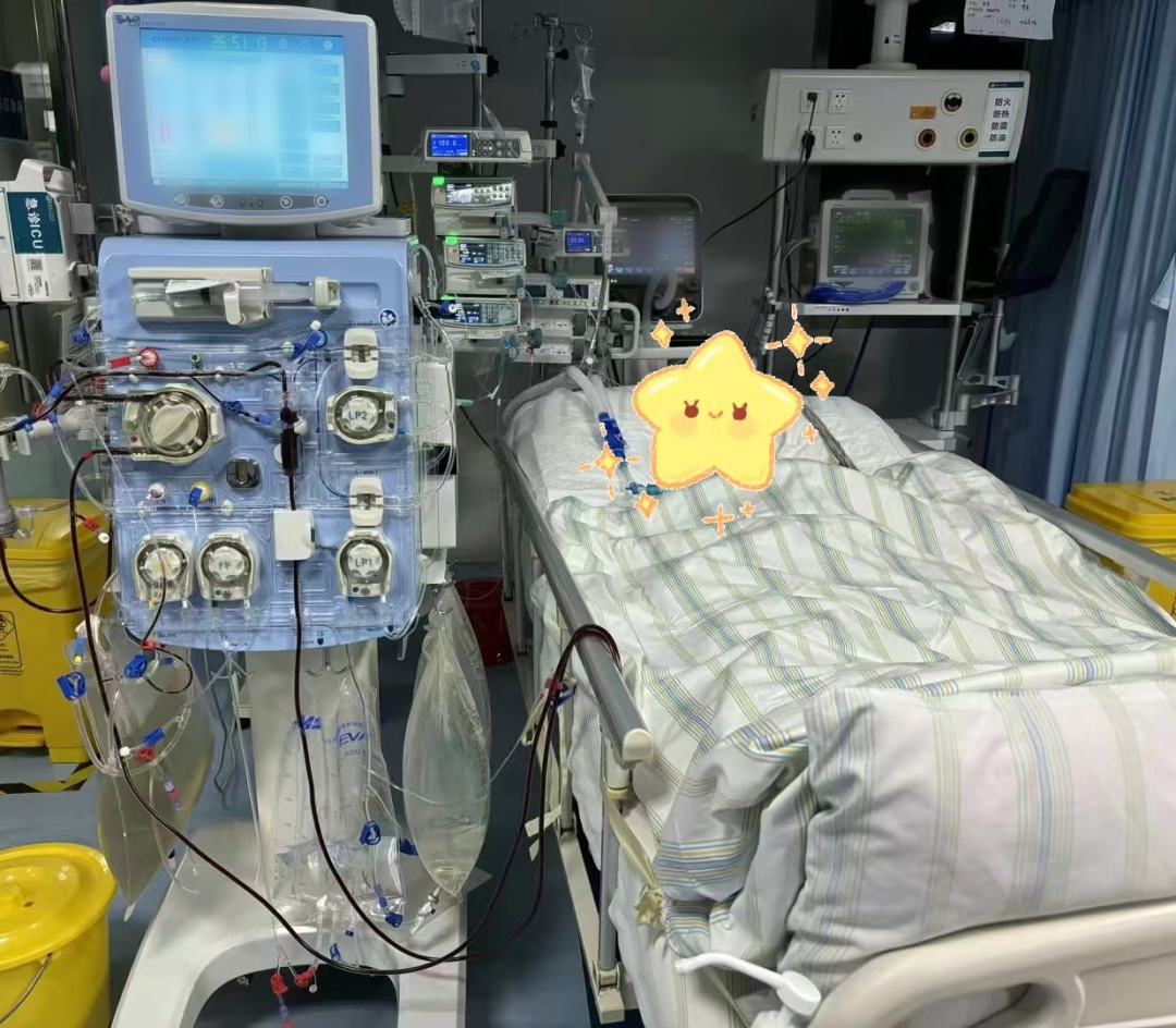 “導(dǎo)管置入成功!”“CRRT管路預(yù)充完畢!”“連接患者,啟動(dòng)治療!”隨著一系列指令的有序落地,僅僅半小時(shí),患者的血液便通過(guò)管路順利引出——深紫色的血液經(jīng)過(guò)CRRT機(jī)器的凈化,逐漸變成鮮紅色,緩緩回輸至患者體內(nèi)。這場(chǎng)無(wú)聲的“血液凈化之戰(zhàn)”,為患者筑起了一道堅(jiān)實(shí)的生命防線。