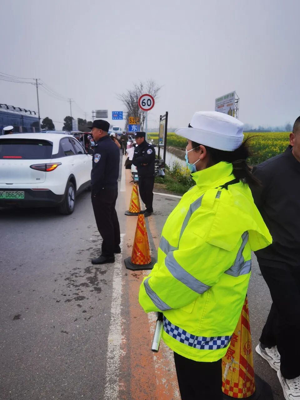 堅(jiān)守崗位的女警們巾幗不讓須眉,與男民警并肩作戰(zhàn),風(fēng)餐露宿,在花海旁的道路上默默堅(jiān)守。她們耐心指揮交通、熱情解答游客咨詢,細(xì)致開展交通安全宣傳,向過往群眾講解“一盔一帶”、安全行車等知識(shí),提升群眾交通安全意識(shí)。忙碌間隙,大家以警車為桌、以路面為席,簡(jiǎn)單就餐后迅速返回崗位,用實(shí)際行動(dòng)詮釋責(zé)任與擔(dān)當(dāng)。