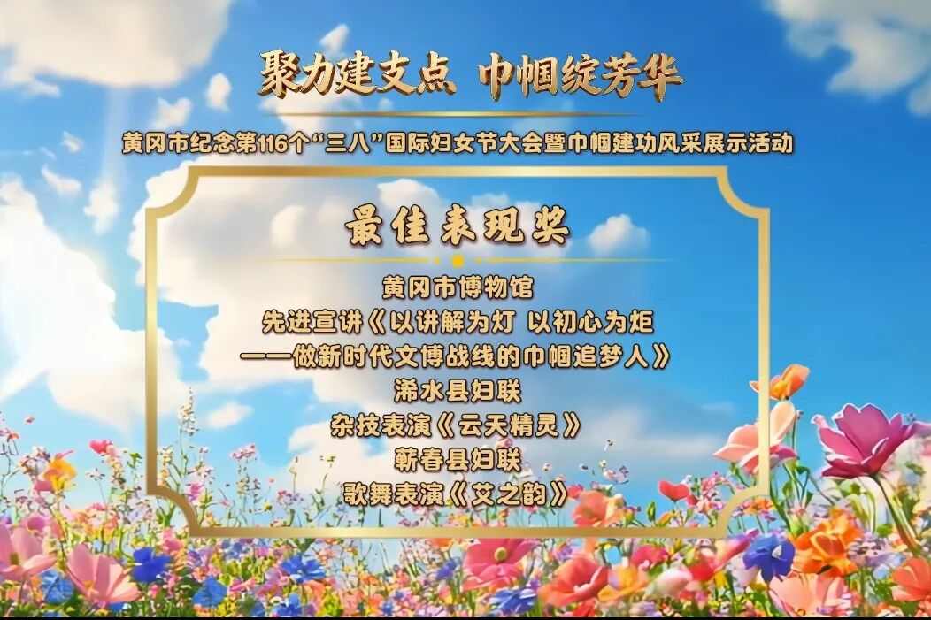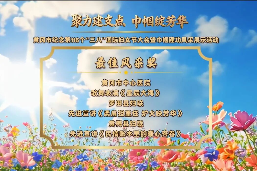 在第116個“三八”國際婦女節(jié)來臨之際,由黃岡市婦聯(lián)主辦的“聚力建支點 巾幗綻芳華”——黃岡市紀念“三八”國際婦女節(jié)大會暨巾幗建功風(fēng)采展示活動,在黃岡市融媒體中心演播廳隆重舉行。來自全市各界的婦女代表歡聚一堂,共慶節(jié)日、共話發(fā)展,全面展示黃岡婦女事業(yè)發(fā)展的豐碩成果,生動呈現(xiàn)新時代黃岡女性的昂揚風(fēng)貌。