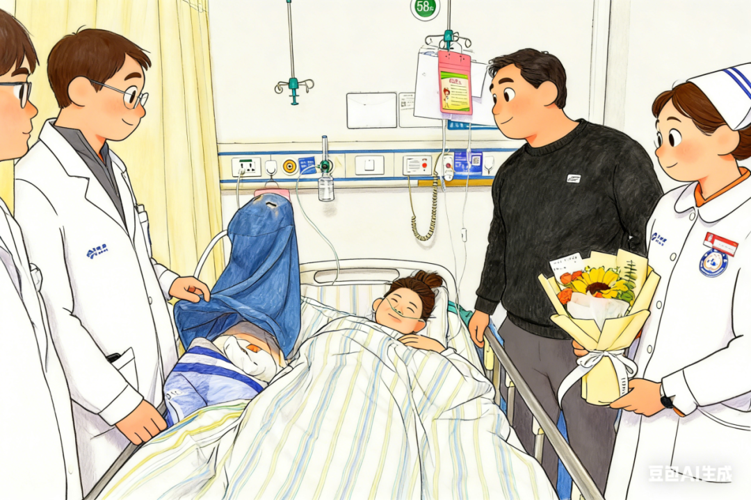 當醫(yī)護團隊捧著鮮花走進病房,余女士正安靜地躺在床上,陽光透過窗戶灑在她的臉上??吹窖矍耙荒?,她愣了一下,隨即露出幸福的微笑,那笑容如春日綻放的花朵,燦爛而動人?!爸x謝你們,真的太感謝了?!彼曇魩е唤z哽咽,眼中閃爍著感動的淚花。