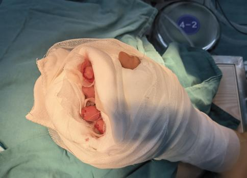 抵達醫(yī)院時,航醫(yī)骨外科值班醫(yī)生已接到通知,在急診待命。接到余女士的那一刻,值班醫(yī)生迅速上前為她查看傷情“您別擔心,一切有我們”,經(jīng)快速檢查,診斷明確:余女士的右手多指完全離斷傷。這是一類極為嚴重的手部創(chuàng)傷,斷指再植手術的黃金時間僅有6-8小時,一旦治療時間稍有延誤,難以保證手指存活。