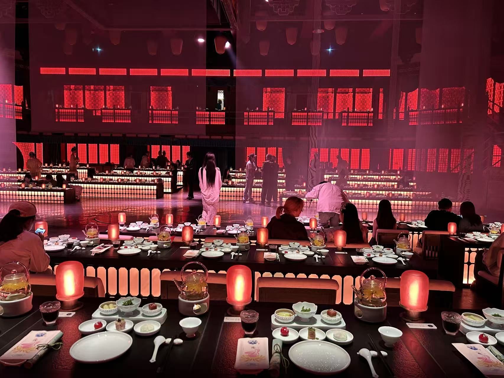 游覽期間,采風(fēng)團(tuán)受邀參加了清明上河園景區(qū)精心籌備的“全國(guó)首個(gè)宋文化沉浸式餐秀——《清明上河園·宋宴》”項(xiàng)目發(fā)布會(huì)。該項(xiàng)目將精致宋式美學(xué)與餐飲體驗(yàn)、劇情演繹深度融合,旨在讓游客在品嘗特色美食的同時(shí),全方位沉浸于宋式生活場(chǎng)景與文化氛圍之中,標(biāo)志著景區(qū)在文旅產(chǎn)品創(chuàng)新上邁出了重要一步。發(fā)布會(huì)現(xiàn)場(chǎng),采風(fēng)團(tuán)成員先睹為快,對(duì)這一創(chuàng)新項(xiàng)目表現(xiàn)出濃厚興趣,并就其文化內(nèi)涵與呈現(xiàn)形式進(jìn)行了交流。