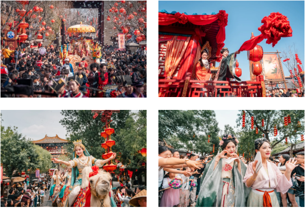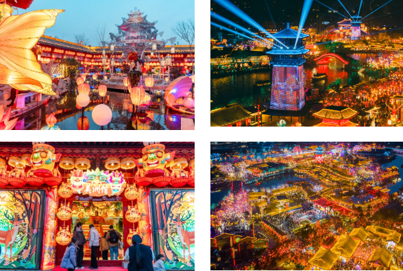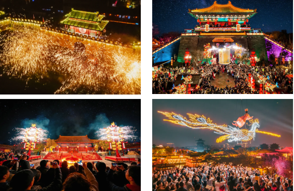 《魚燈大巡游》《國風(fēng)大巡游》《龍馬花車巡游》《打鐵花之盛世大宋》《鳳舞九天飛天秀》《決戰(zhàn)汴梁城》《藥發(fā)傀儡·盛世焰歌》等演出貫穿全天輪番上演,與春日限定演繹交相輝映。