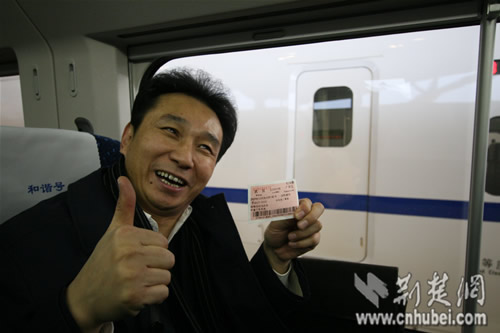 田克兢接受記者采訪時表現(xiàn)得格外興奮,他還高興地向記者展示了車票。他說,早就在關(guān)注武漢高鐵了,能有機會親自體驗,實在激動。