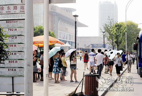 剛從襄陽(yáng)出差回來的市民陳勇說,在烈日下拖著行李箱等公交,真是一件要命的事。6月中旬時(shí),陳勇也是從外地出差回來,武漢一會(huì)兒傾盆大雨,轉(zhuǎn)瞬又烈日當(dāng)頭,“聽說漢口站每天有3萬多出站旅客,就這樣被雨淋日曬”。