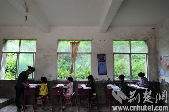 “這是我們家訪帶回來的學生。”支教生胡益波介紹。今年春天開學,他們在王家組家訪時,了解到一個叫王露露的孩子已到了上學年齡,卻沒有入學。便上門做工作,征得家長同意,先跟讀一個學期。